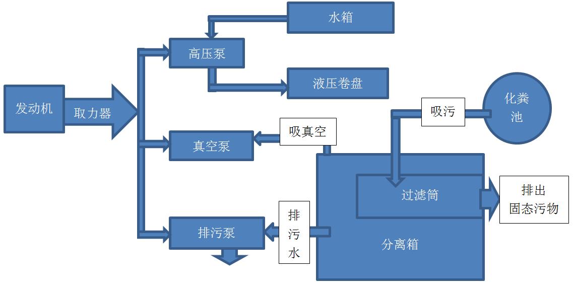 污水處理車配有大容量污水分離箱,污水分離箱內(nèi)部安裝不銹鋼過濾桶(可根據(jù)客戶需求選裝滾筒過濾或者絞龍過濾,濾眼孔徑也可選裝),箱體折彎處理,內(nèi)部槽鋼加固,車輛設(shè)備平臺安裝水環(huán)真空泵、排污泵,整套設(shè)備通過取力器獲取發(fā)動機動力來進行運轉(zhuǎn)。
