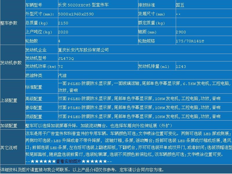國五長安LED廣告車底盤配置: