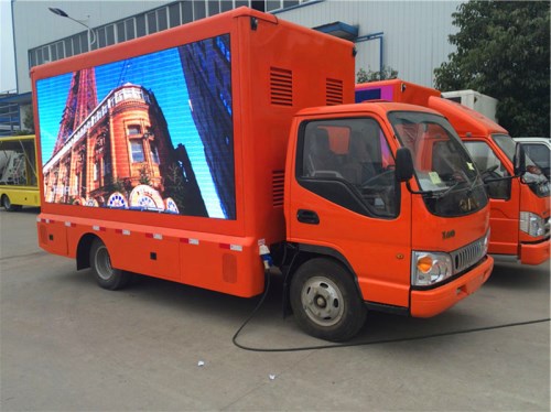 江淮好運(yùn)LED廣告車上裝配置:1.廂體一側(cè)采用防水、防震P6戶外LED全彩屏,屏幕尺寸為:3840x1760=6.8平方;另外一側(cè)標(biāo)配為單色條屏和燈箱廣告的結(jié)合(也可選裝兩側(cè)彩屏),內(nèi)設(shè)滾動(dòng)式裝置,可完成5副圖片的切換,也可以選擇安裝P6戶外全彩LED屏,后側(cè)為單色字幕:1280x1760=1.84平方。