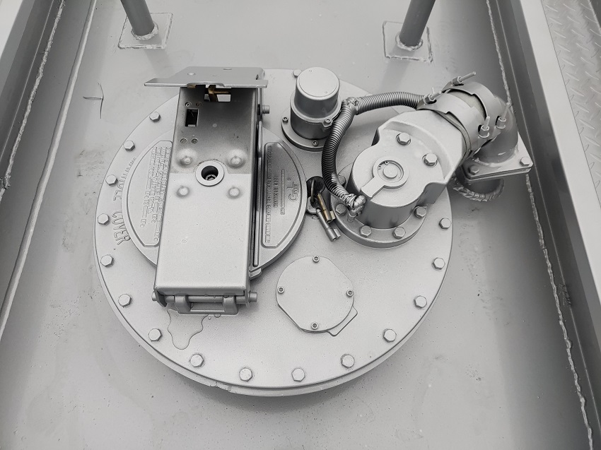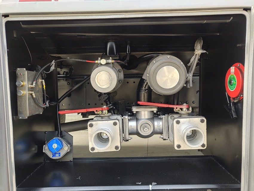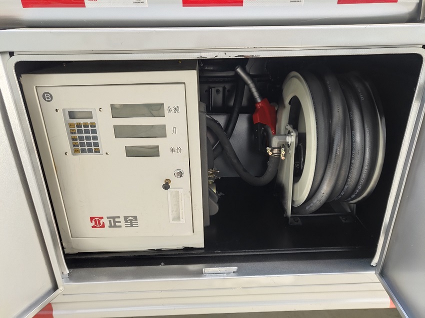上裝:采用程力公告CLW5181GYYD5整車型號,單倉帶泵,歐標(biāo)一套(歐標(biāo)罐口、智能緊急切斷閥、下裝油口、油氣回收、防溢漏探桿),恒山加油機(jī)壹臺及15米自帶回位卷盤(可選擇帶小票打?。?。附件(后爬梯、活動護(hù)欄、鋼絲網(wǎng)走道、工具箱),內(nèi)有防浪板(可采用新式防浪板,可減輕車輛自重,增加罐體強(qiáng)度),前置防爆排氣管,滅火器,金屬漆,反光條、反光帶及“爆”字標(biāo)識,其他廠標(biāo)。