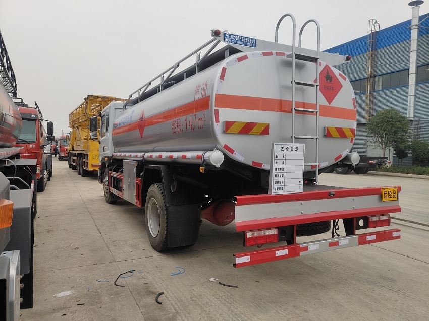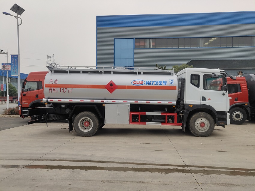 上裝配置:程力公告14.7方,實際容積16立方,可裝柴油13.3噸,嚴(yán)格按照公告尺寸進(jìn)行生產(chǎn),歐標(biāo)一套:海底閥、歐標(biāo)罐口、下裝油口、油氣回收、防溢流探桿。單倉帶泵,正星大流量加油機(jī)1臺帶15米自動回位卷盤,帶靜電盤,帶折疊護(hù)欄,走道,爬梯。所有鎖用歐式鎖扣,帶安全告示牌,新式后保險杠,配一個防火帽,兩根罐體等長輸油管,兩個滅火器,其余標(biāo)配油漆:銀粉色,貼反光條,反光貼,安全告示。