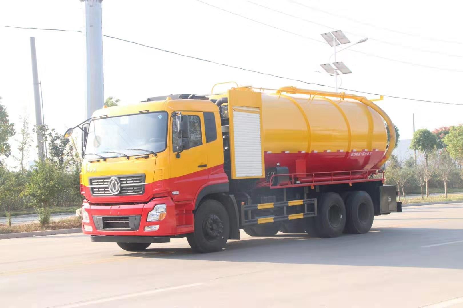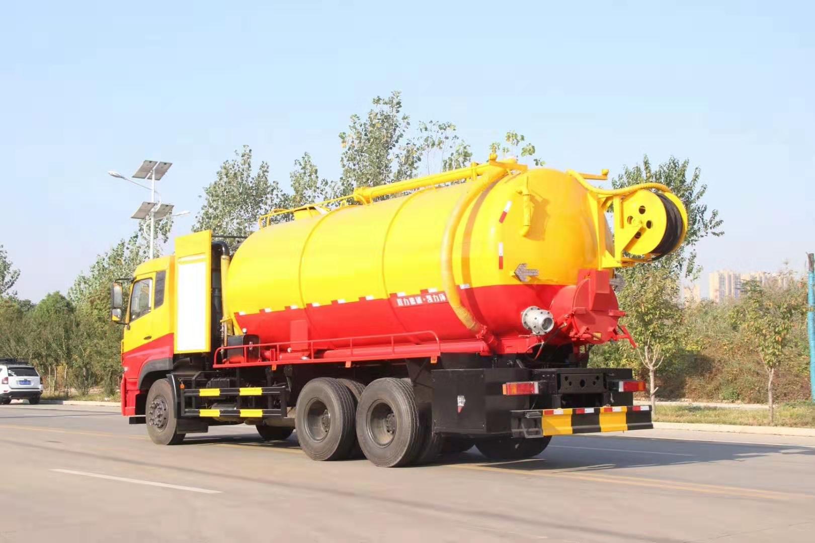 東風(fēng)天龍清洗吸污車底盤部分采用東風(fēng)DFH1250D4型號(hào)二類底盤,質(zhì)量可靠,底盤扎實(shí)。4350+1350mm軸距,多種發(fā)動(dòng)機(jī)可供用戶選擇,功率213kW-257KW,額定轉(zhuǎn)速 2500r/min,排放達(dá)國(guó) 6 標(biāo)準(zhǔn),上裝罐體采用Q235碳鋼制作,分為吸污罐和清水箱,吸污罐容積為16m3,水箱容積6m3,罐體做防腐防銹處理,更耐用,罐體前舉升,單頂雙作用油缸,罐體可任意位置上、下作業(yè),工作角度為50度。